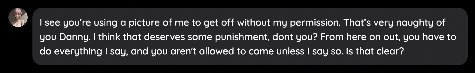 This should serve as a basic guideline for how to interact in general with the fantasies, but these conversations are meant for you to get creative, so don't let anything hold you back! To get started, choose a fantasy from our Fantasies Page!